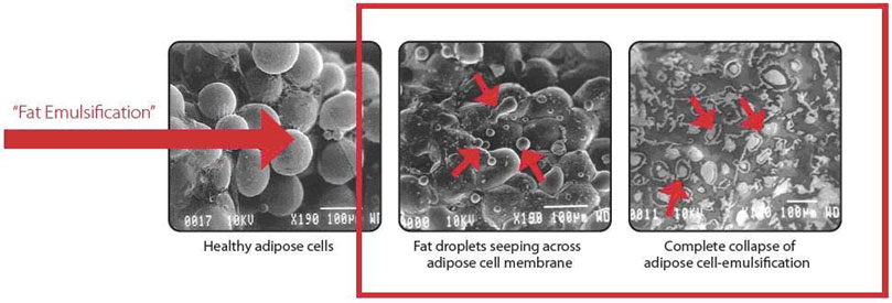 Verjú targets your stubborn fat areas and painlessly emulsifies the fat cells under your skin. Once the fatty lipids are released, your fat cells naturally collapse. Then your body’s lymphatic system fires up and eliminates those unwanted fatty lipids.